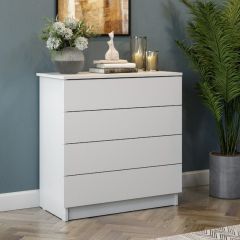 Комод предназначен для хранения вещей, белья или одежды, и для этого у него есть четыре вместительных выдвижных ящика, расположенных один над другим.